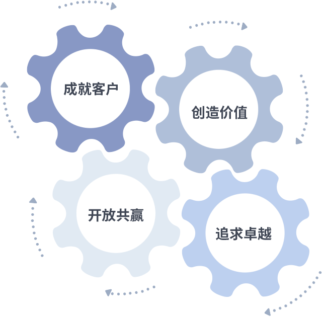 成就客户是一切决策的出发点,创造价值是衡量所有工作的标准,追求卓越是35273做事做人的态度,开放共赢是35273的格局也是最终的结果。价值观的齿轮环环相扣,推动着组织里的每个人不断向前。